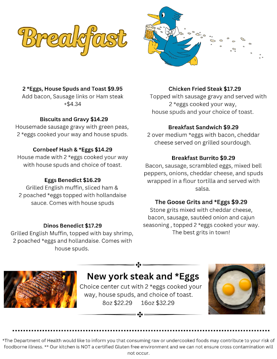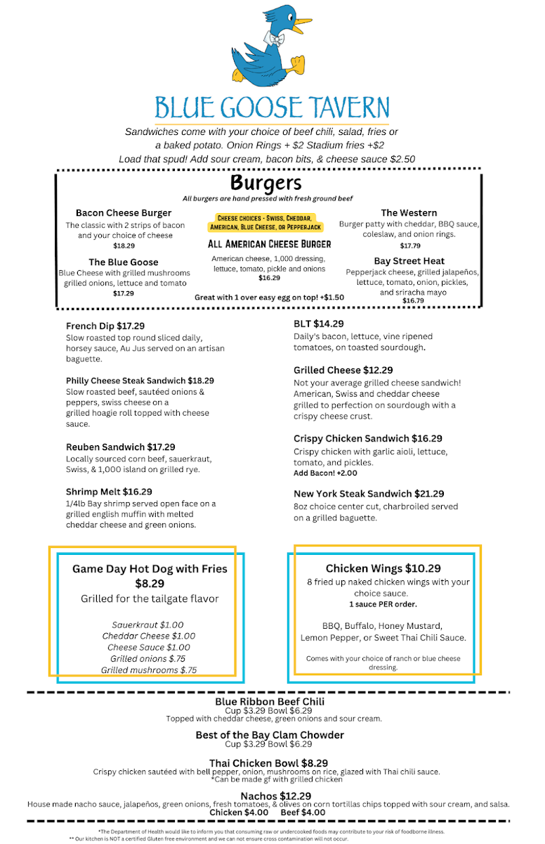 The menu at Blue Goose Tavern offers a relaxed and approachable selection that complements its lively sports bar atmosphere. Whether you're stopping by for a casual lunch, a laid-back dinner, or settling in to catch the game, you'll find a variety of satisfying options that fit the setting.